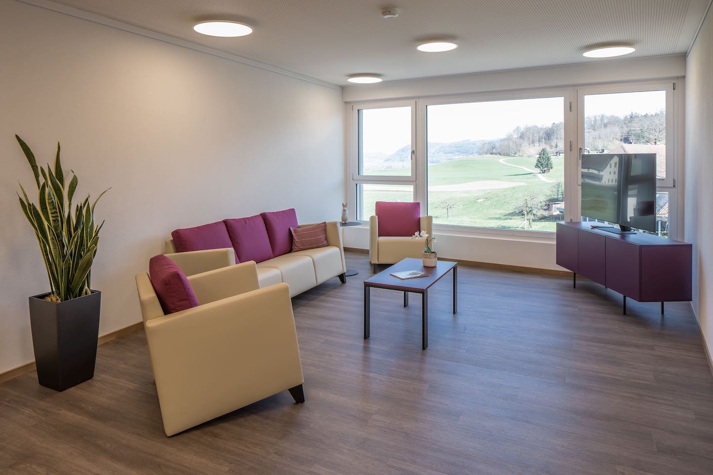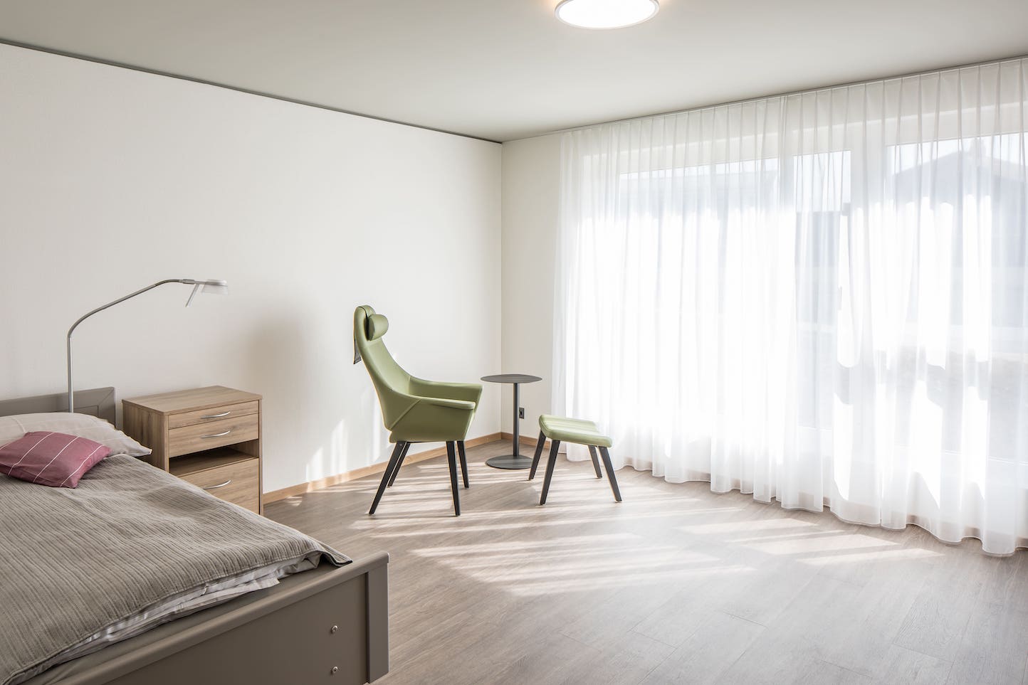 Unsere Bewohnenden profitieren von einer individuellen Betreuung – mit viel Herz, Respekt und Professionalität. Die hellen Einzel- und Doppelzimmer, alle mit eigenem Bad, bieten Komfort und Privatsphäre. Zahlreiche Begegnungszonen und ein gepflegter Garten laden zum Verweilen und Wohlfühlen ein.